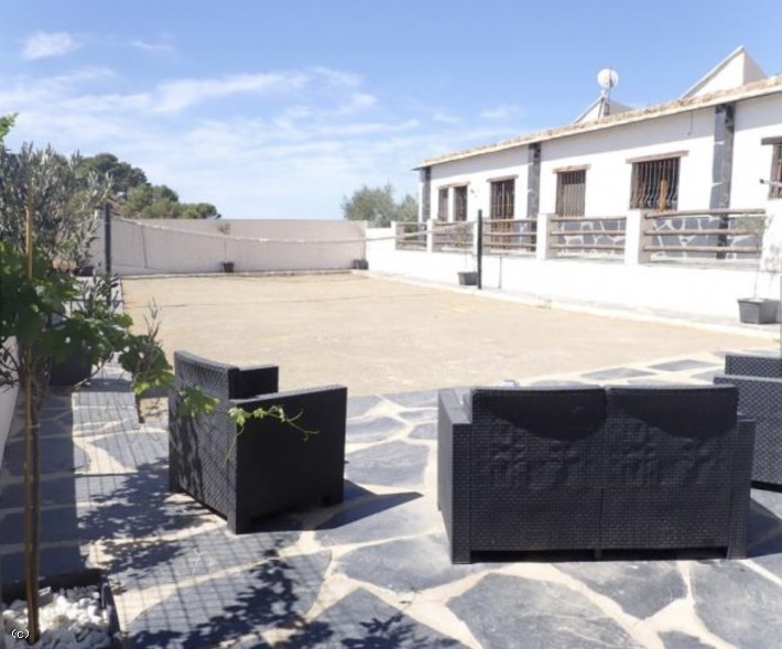 On one side is the main house & on the other are two animal barns, one of 168m2 & the other 172m2, plus chicken / turkey sheds & a huge storage container. There is smaller fenced area behind one of the barns & a substantial fenced area that runs inside of the Cortijo entrance track.