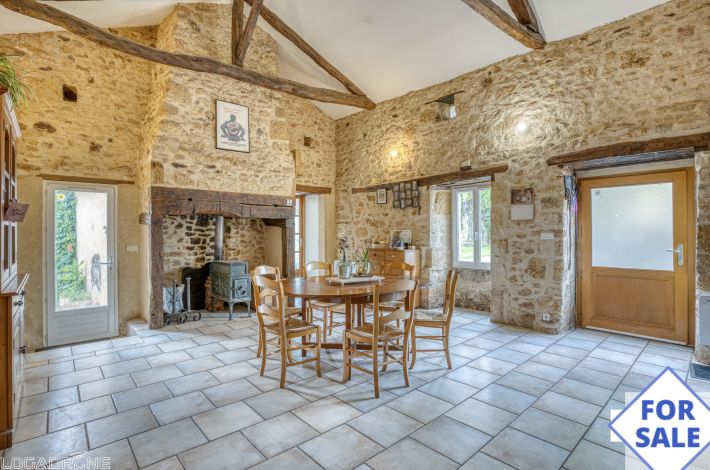 Only 10kms from Monpazier and 9kms from Belves, in a charming typical little hamlet, very peaceful location, this stone house was completely renovated in 2006 and offers a 45m2 living-room / dining-room with fireplace, separate fitted kitchen (not equipped), 3 bedrooms, mezzanine, shower-room and toilet. Cellar in the basement and 71m2 garage built 4 years ago.