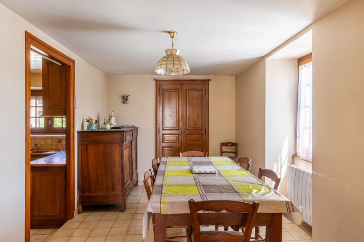 The house, composed of an older retained character part and a more recent section, features a magnificent reception room of over 70m² and eight bedrooms. It offers numerous possibilities, including the creation of a B&B, taking advantage of the tourist appeal of the commune and the region.