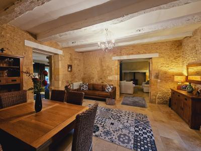 A lovely location in the countryside and yet just 3 km from Lalinde, very calm with beautiful views from the property of the surrounding countryside. This Stone house of approximately 287m2 living space includes 5 bedrooms, 2 en-suite, 2 living rooms, 2 kitchens, 2 bathrooms, dining room, laundry room & WC.