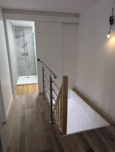 - Ground floor: of a beautiful living room (kitchen, living room, living room) with exit to the terrace, a toilet. A conduit for the installation of a stove is in place.