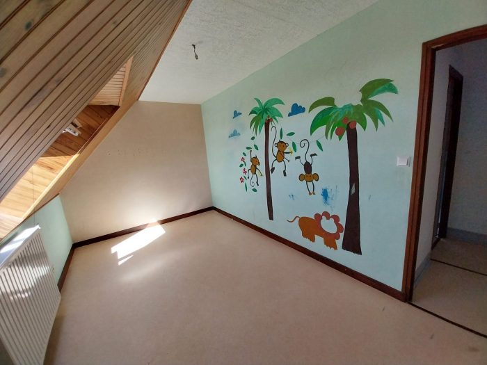 - Ground floor: a large living room of 28 m² with fitted kitchen, a living room with fireplace, a bedroom, office area, a bathroom.