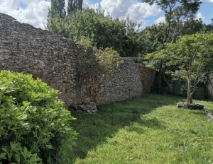 Walled garden with privacy and pedestrian canal access.