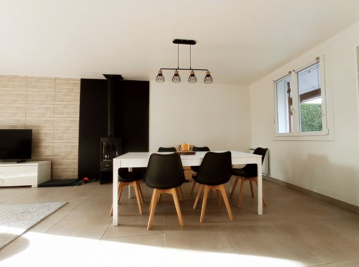 It is organised as follows: a very bright entrance, a warm living room with a wood stove, three bedrooms including a bedroom on the ground floor, a new independent kitchen, fitted and equipped, a modern shower room and separate toilets.
