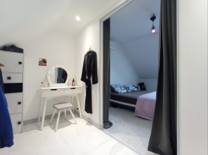 - Upstairs: a bright mezzanine, 3 beautiful bedrooms, 1 office, a bathroom with a recent shower and a toilet. One of the bedrooms has its own water point area with dressing room.