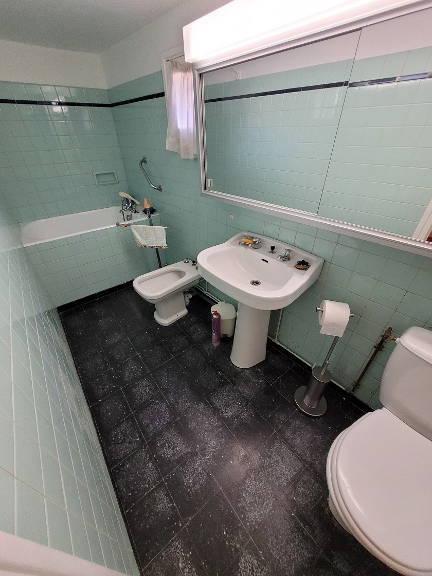 - 1st floor: Entrance hall of 30 m2, lounge of 21 m2 with access to an office/bedroom of 12 m2 with dressing room of 3 m2, dining room of 21 m2, equipped kitchen of 13 m2 (upper and lower units, hob, extractor fan, oven, sink), 2 bedrooms of 12 m2 and 8 m2, bathroom of 4 m2 (bath, WC, washbasin), WC, staircase, side part (that could be fully independent) including an office of 21 m2 with acces to bedroom of 14 m2and WC with handbasin plus former washroom of 4 m2 (bath, WC, washbasin) located between ground and 1st.
