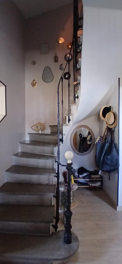 - Ground floor: 15 m2 terrace, not overlooked, east-facing, laundry room of 7.73 m2 with sink, entrance hall of 9 m2 with a magnificent original stone central staircase, living room of 16.37 m2 with access to the terrace via French doors, fully equipped kitchen of 13 m2 (wall and base units, electric oven, ceramic hob, extractor hood, double sink, dishwasher) and balcony.