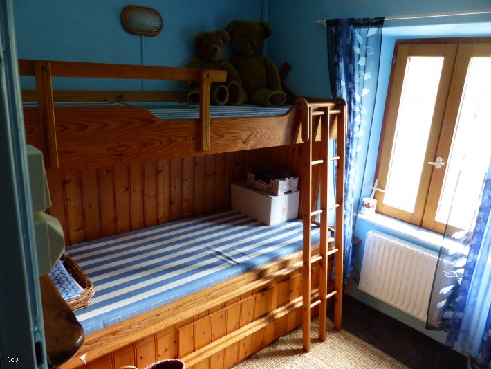 The house itself was built in 1840 as a "Maison de Maitre", but before that, in fact from 1216, a Water Mill had been on site,- hence the name, Le Moulin de Coquerel. The house is around 150 square metres and with the garden and paddock/orchard a total area of just under 5000 square metres. It has been built with a lot of character, witnessed by having rooms in between floors. For example, counting the "cave" as a basement, there are 6 levels.