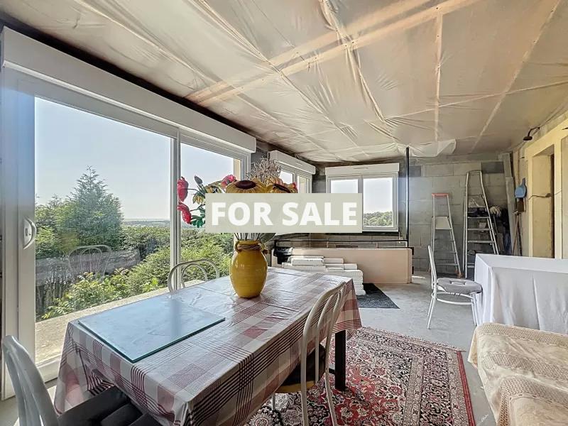 - Ground floor: an entrance serving a fitted kitchen with dining area, a bright living room facing south offering an unobstructed view and constituting the extension of the house, a bedroom, a second hallway room that can be transformed into a bedroom or office, a bathroom and a toilet.