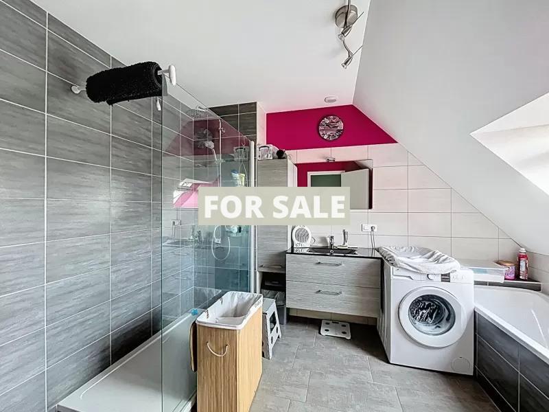 - Upstairs: a mezzanine serving three bedrooms, one of which has a dressing room, as well as a bathroom with a bathtub, a shower and a toilet.