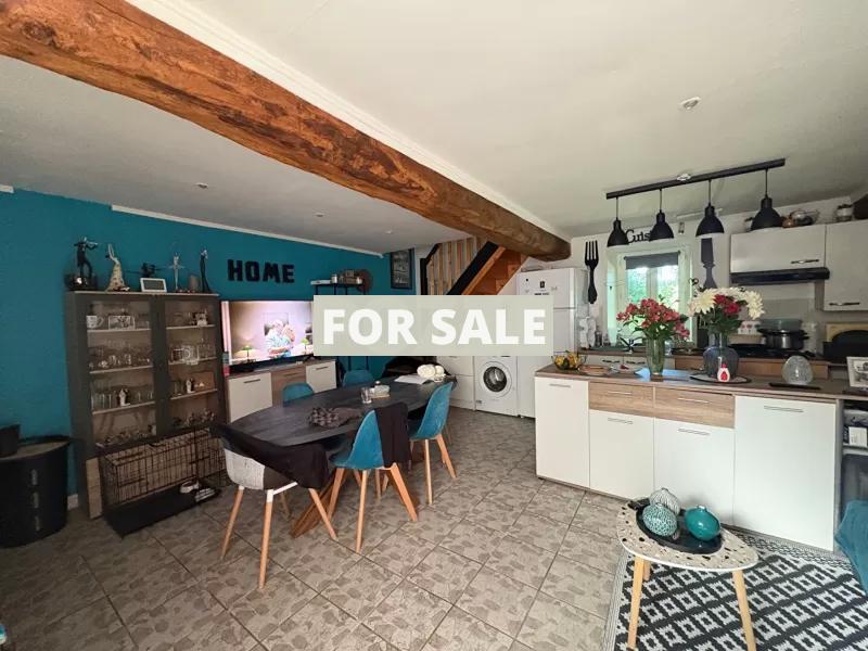 We offer you, in a small, quiet hamlet near to the village of Montpinchon, this property comprising two adjoining houses, one of which is currently rented, and composed as follows:A 91 sq m house comprising: