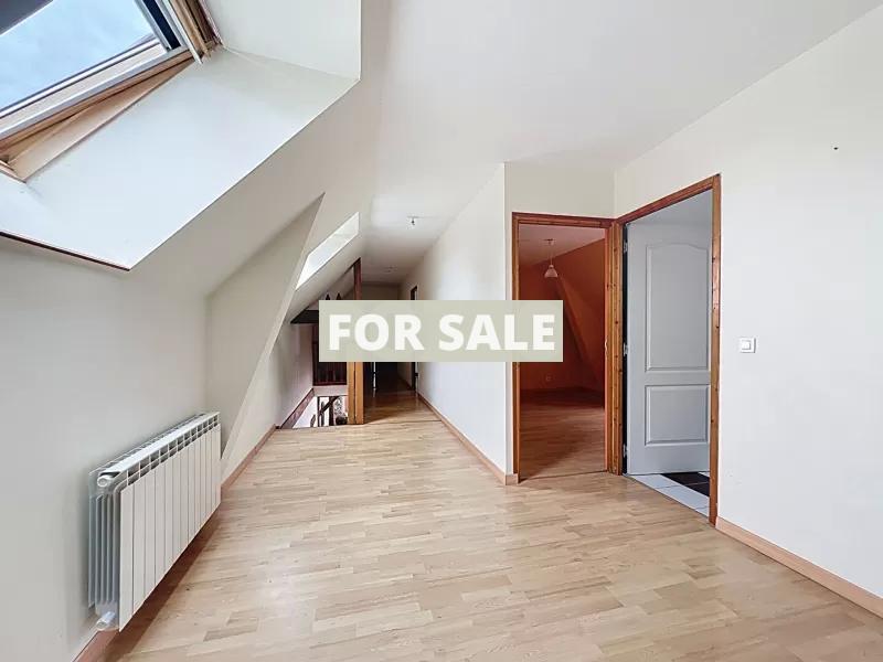 - Ground floor: entrance hall, living room with wood-burning stove (room of approximately 70 m2), fitted kitchen, one bedroom, bathroom (bath & walk-in shower), separate wall-mounted toilet, summer lounge, storeroom and adjoining garage.