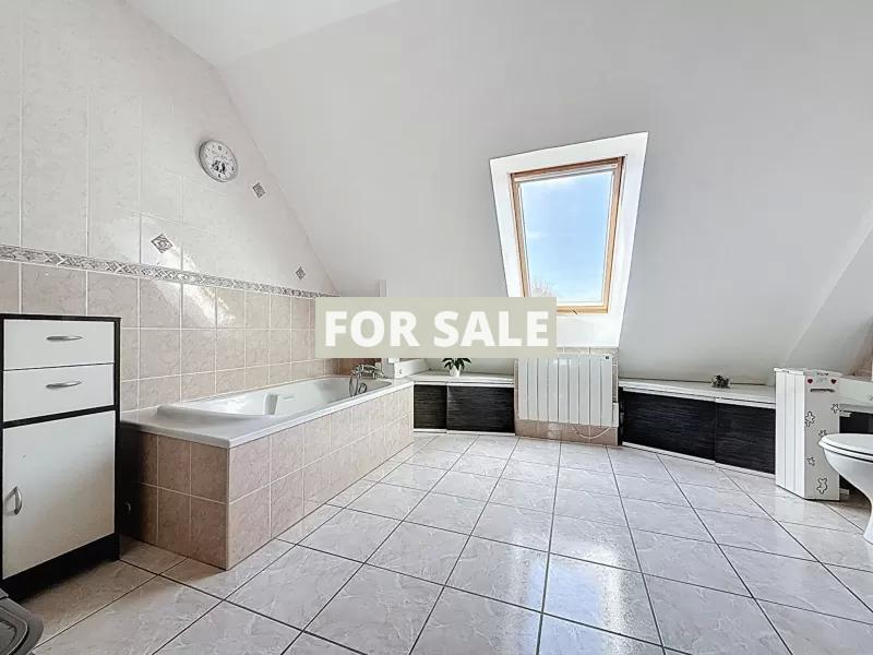 - First floor: a mezzanine landing, three bedrooms, a bathroom with bathtub and shower, a dressing room, and a WC.