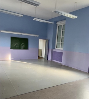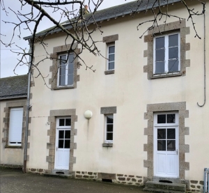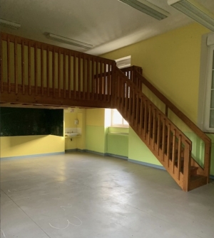 A former school covered in a slate roof and offering: garage (14.72m2), 2 classrooms (44.46 m2 each, one with a mezzanine (18m2)) and a dining hall (12m2). A stone house covered in slate containing: