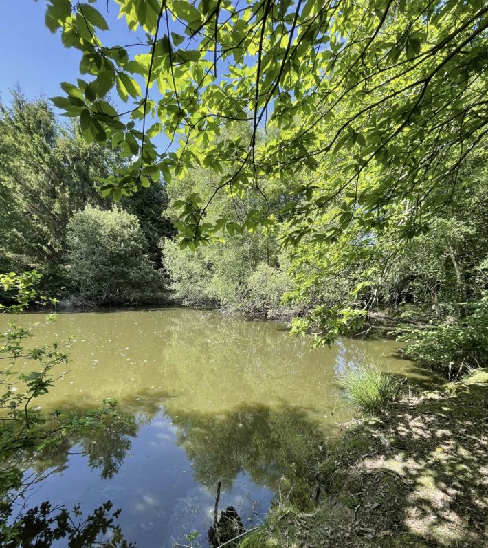 On just over 1 hectare, this land features, woodland, a lake and a shed:
