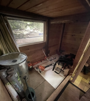 - Shed (15.7m²): including a kitchen area, a sleeping area, and a toilet.