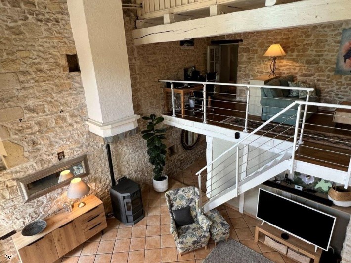 Mezzanine (28m2): parquet flooring, exposed stone, oak beams