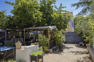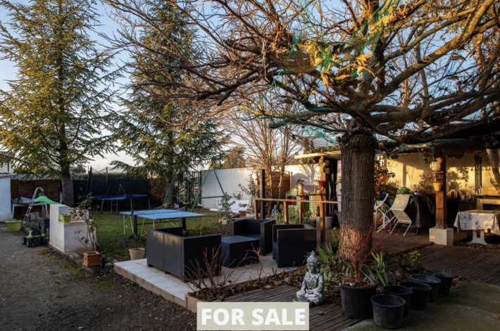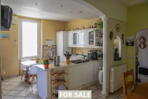 Located in the heart of the village, this property is fully fenced and includes several parking spaces and a large garage.