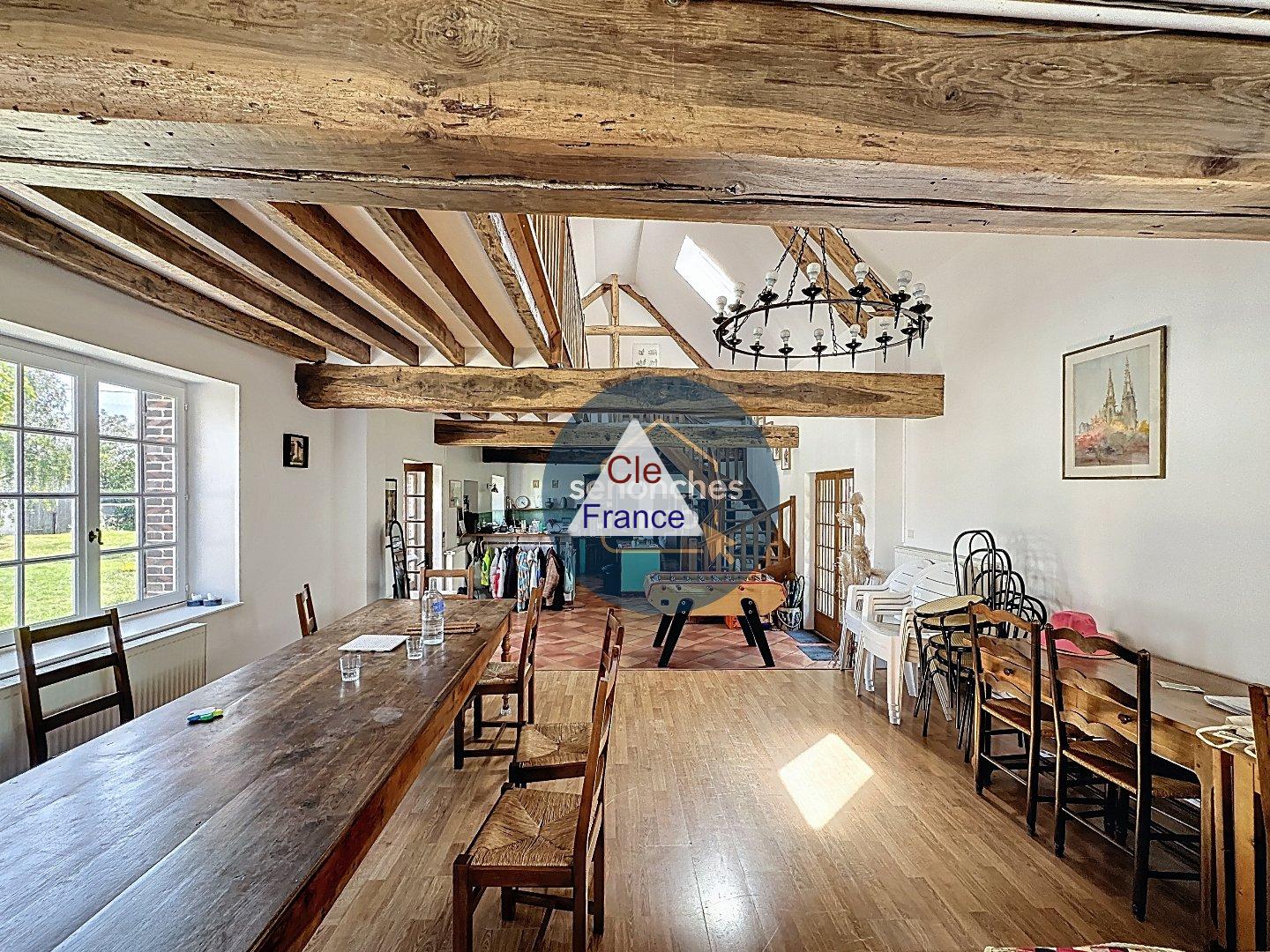 Nouveauté à vendre à Ardelles (28250) Proche Digny, à moins d\'1h20 de Paris Rare sur le marché, ce somptueux ancien corps de ferme rénové du XIXe siècle vous ouvre ses portes au cur de la campagne d\'Ardelles, à proximité immédiate de Digny. Offrant 330 m² habitables et un terrain clos et arboré d\'environ 1,5 hectare, ce bien unique allie charme de l\'ancien, volumes généreux, prestations de qualité et dépendances multiples pour vos projets de vie ou professionnels. Un intérieur chaleureux et fonctionnel De plain-pied, la maison principale se compose d\'une pièce de vie d\'environ 120 m² composée d\'un salon-séjour avec cheminée ouverte, d\'une cuisine aménagée et équipée, ouverte sur un second salon à l\'arrière, idéal pour les loisirs (billard, flippers, salle de jeux). Le rez-de-chaussée dessert trois chambres (14 m², 9,53 m² et 12,65 m²), une salle d\'eau avec WC, une salle de bain supplémentaire (7,5 m²), ainsi qu\'une grande pièce polyvalente de 24 m² pouvant faire office de salle de sport et comprenant un sauna et une cheminée. La maison dispose également d\'un WC séparé, d\'un couloir carrelé de 12,7 m² et d\'une chaufferie avec chaudière au fioul, facilement remplaçable par une pompe à chaleur air-eau. À l\'étage, un superbe dégagement mansardé de 40,4 m² aux poutres apparentes dessert : 4 chambres (9,96 m², 13,7 m², 15,3 m² et 17,6 m²) 1 salle d\'eau avec WC (6,5 m²) 1 pièce palière de 19,8 m² pouvant servir de coin TV ou de couchage supplémentaire Des dépendances exceptionnelles et un environnement privilégié Le bien comprend une grange de 238 m² au sol, avec magnifique toiture, idéale pour des projets événementiels ou de stockage. Une deuxième dépendance d\'environ 95 m² abrite 5 boxes à chevaux. Un préau permet de profiter de déjeuners en plein air à l\'abri. Deux petites dépendances attenantes à la maison (non communicantes) peuvent servir de caves, abris bois ou espaces de rangement. Enfin, un nbsp studio indépendant de 31,6 m² équipé d\'une salle d\'eau avec WC, accessible par l\'extérieur, constitue un atout idéal pour recevoir ou loger un adolescent. Cerise sur le gâteau : un terrain de tennis en excellent état vient enrichir l\'offre de loisirs du domaine. Points forts de cette maison à vendre à Ardelles : Surface habitable de 330 m² sur un terrain de 15 000 m² 6 chambres + studio indépendant Grange, boxes à chevaux, préau, caves Terrain de tennis, sauna, cheminées Proche Digny, Paris à 1h20 Aucun travaux à prévoir, excellent état général Informations techniques : DPE : E (306 kWh/m²/an) Assainissement : fosse septique non conforme Chauffage central fioul, évolutif en PAC Année de construction : 1850 Prix de vente : 395 000 Cette propriété hors normes, aussi bien résidence principale qu\'opportunité d\'investissement, comblera les amoureux de la nature, les familles nombreuses ou les porteurs de projets professionnels. Ne tardez pas à venir visiter ce bien unique en son genre.