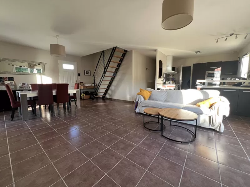 Detached house built in 2008, approximately 110 m² of living space on a 600 m² plot, comprising 5 rooms including 3 bedrooms, a playroom, and a garage.