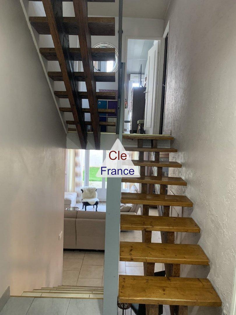 - Ground floor: Upon entering, you'll find a storage area and a door leading to the attached 15 m² garage. Gentle stairs lead to the living areas, which open onto the garden and comprise a bright and spacious 34 m² living room and an 11.30 m² fitted kitchen.