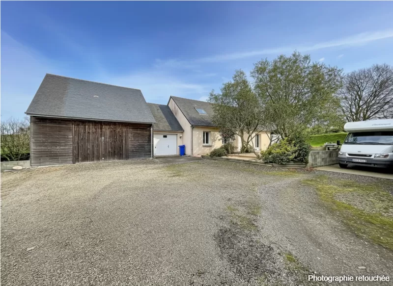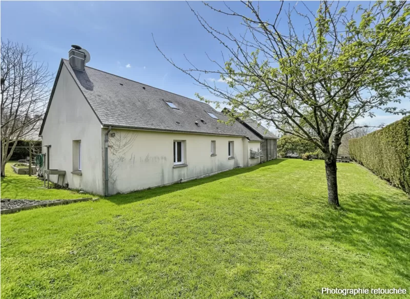 Detached House of 119.45 m² in Bréhal, situated on a 1,476 m² plot, this 6-room family home offers 4 bedrooms (with the possibility of a 5th), single-level living, and a beautiful, bright living room of over 45 m² equipped with a wood-burning stove, ideal for entertaining family and friends.