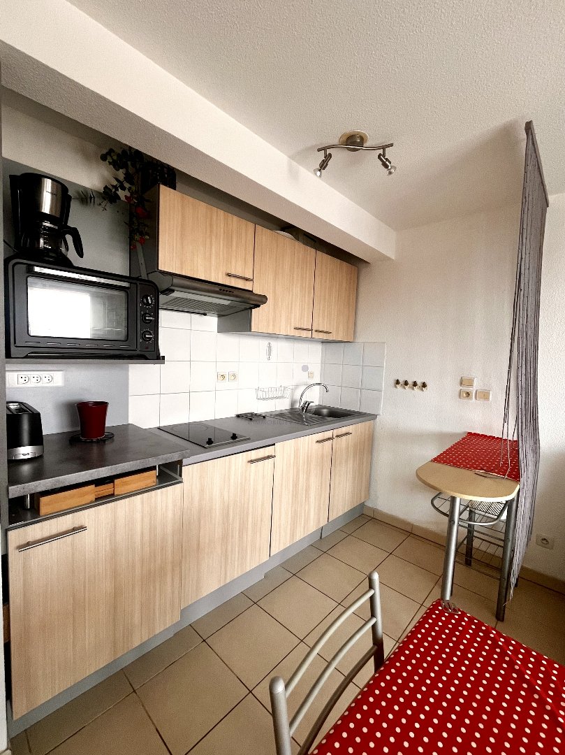 Set in a prestigious residence with private beach access and a swimming pool. Beautiful one-bedroom apartment on the 2nd floor, approximately 33 sq m, comprising a living room with a fitted kitchen opening onto a lovely terrace of approximately 11 sq m, a bedroom, a bathroom, and a separate WC.