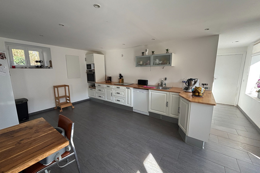 - Ground floor: you will discover a large, bright living room with an open-plan fitted and equipped kitchen, complete with a fireplace and wood-burning stove, as well as a master bedroom with a private shower room, a separate WC and a laundry room.