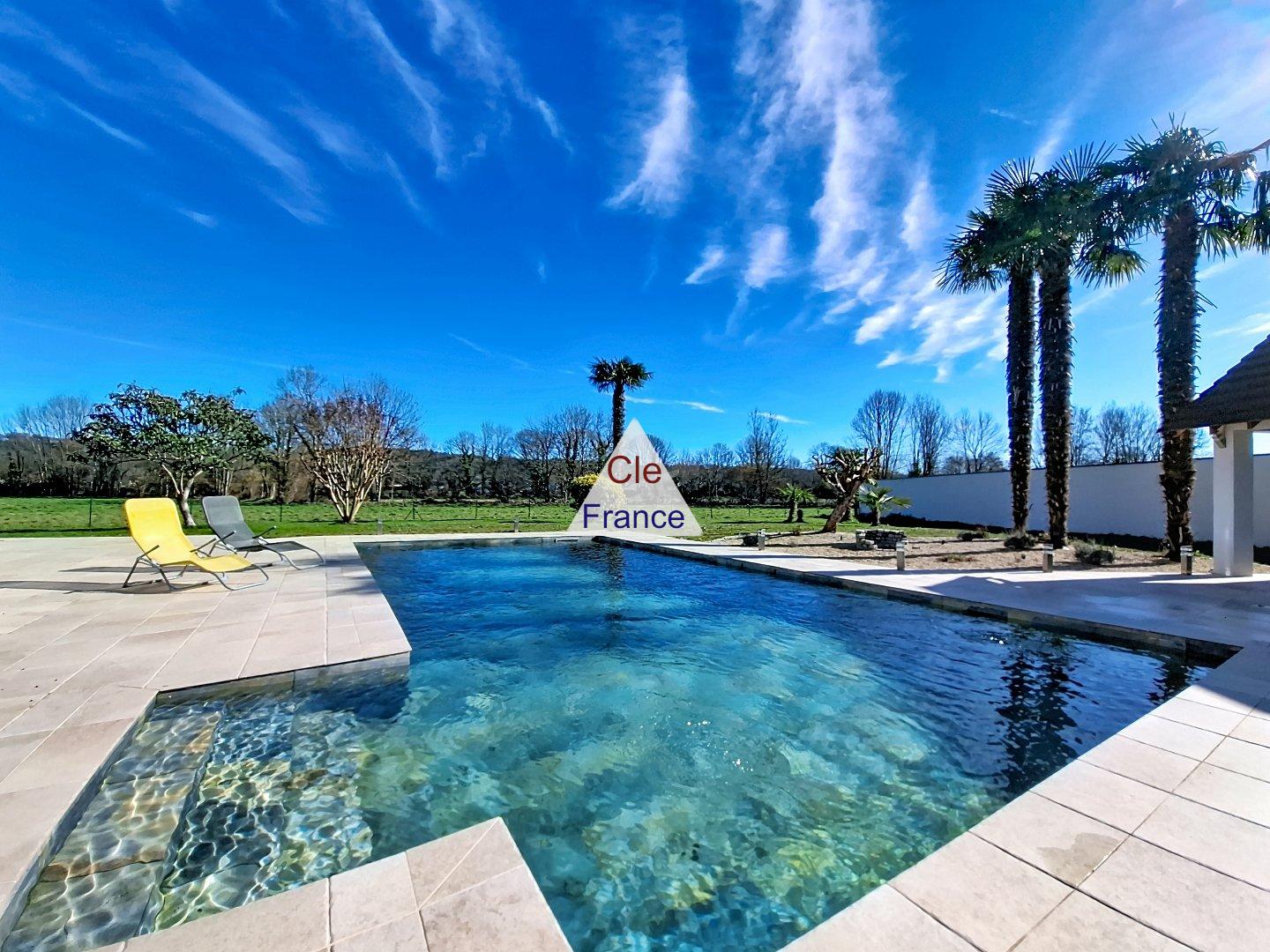 The meticulously landscaped garden, the swimming pool, and its pool house offer an exceptional setting, perfect for enjoying sunny days. From the moment you enter, the house reveals a unique and soothing atmosphere: generous volumes, natural light, and surrounding tranquility harmonise with the unobstructed view of the Pyrenean landscape.