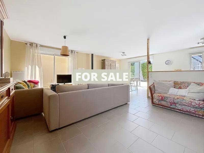 - Ground floor: an entrance hall with closet, a bright living room with wood stove, opening onto a fitted and fully equipped kitchen, it also has: two bedrooms, one with closet, a toilet with washbasin, as well as a bathroom with toilet.