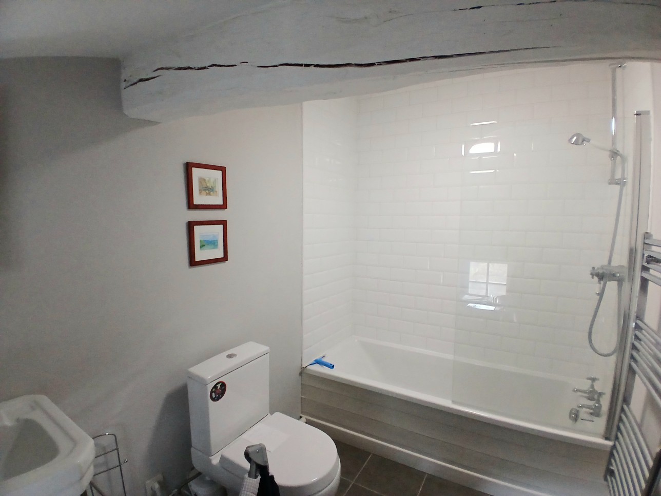- 2nd floor: Large master suite of 40 m2 with beautiful wooden floor and exposed beams and its en suite shower room (Italian shower, vanity unit, WC, heated towel rail), bedroom of 8 m2 with en suite bathroom of 5.68 m2 (bath, washbasin, WC, heated towel rail).