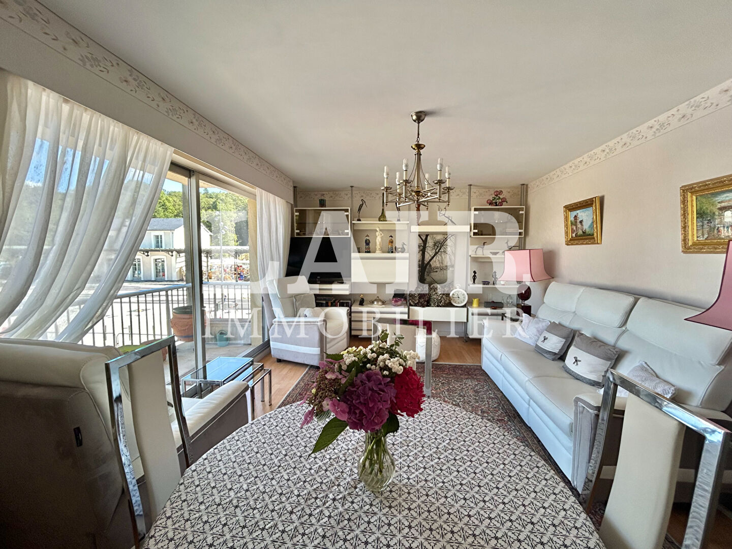 An entrance hall with built-in wardrobes, a bright living room opening onto a large balcony, a fitted and equipped kitchen, a hallway with built-in wardrobes, two lovely bedrooms with balcony access, a shower room, and a separate toilet.