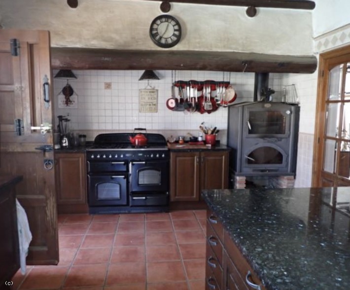 The generously sized kitchen has granite work surfaces, two butler sinks, central island, wood burner with oven, dining area, a walk-in pantry & a doorway which leads to the swimming pool, BBQ & Alfresco dining area.