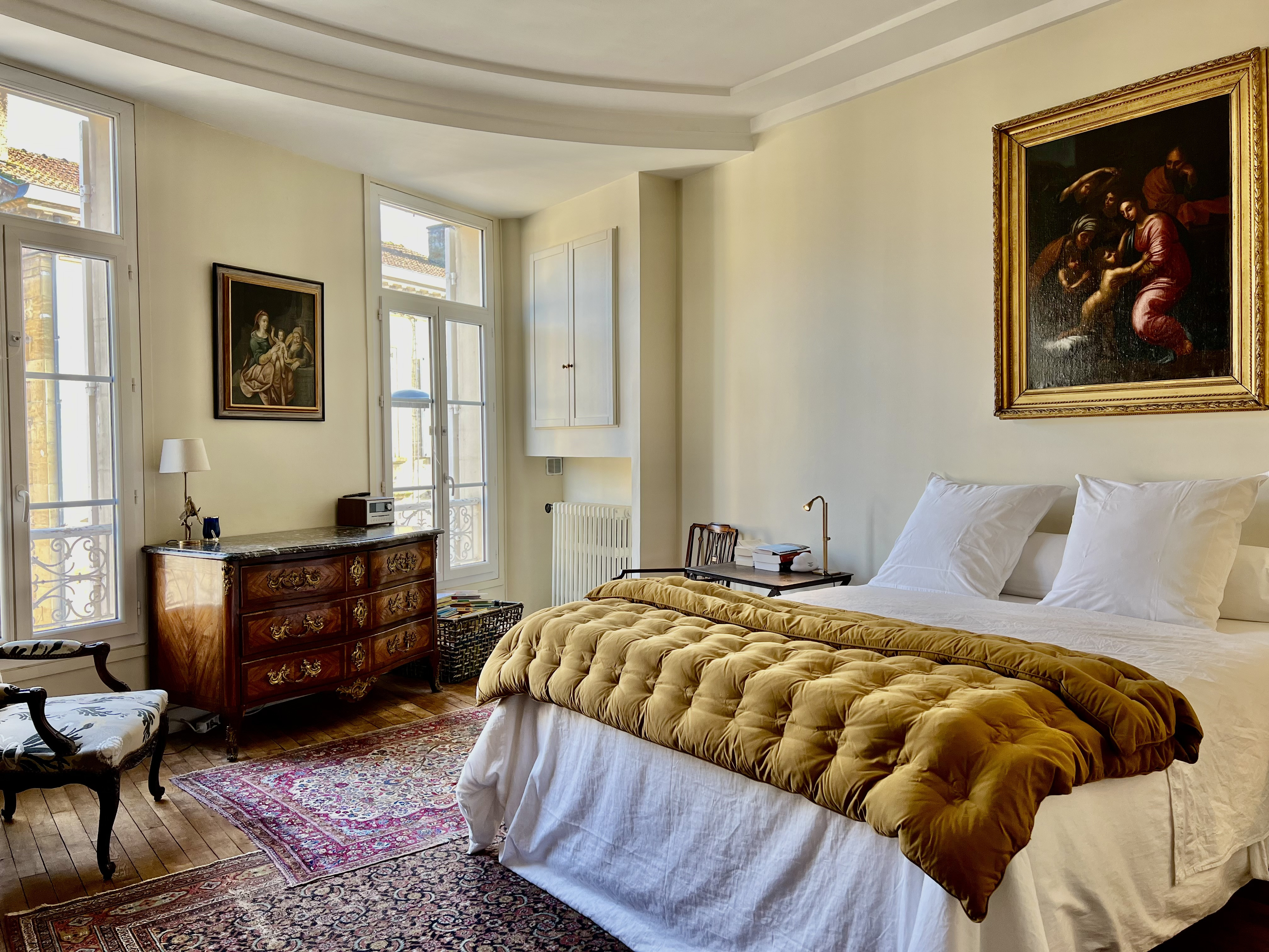 Upstairs, another landing has been converted into a small study and leads to two bedrooms with dressing rooms and a bathroom with WC (possibility of installing a second bathroom).