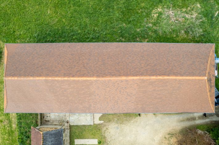 The roof is new and the structure has been reinforced. It is divided into three sections: