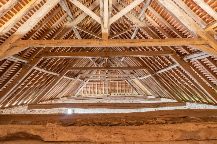 Storage section arranged over three levels and a large open section rising to the roof ridge, allowing plenty of scope for the creation of a beautiful home or impressive living space.