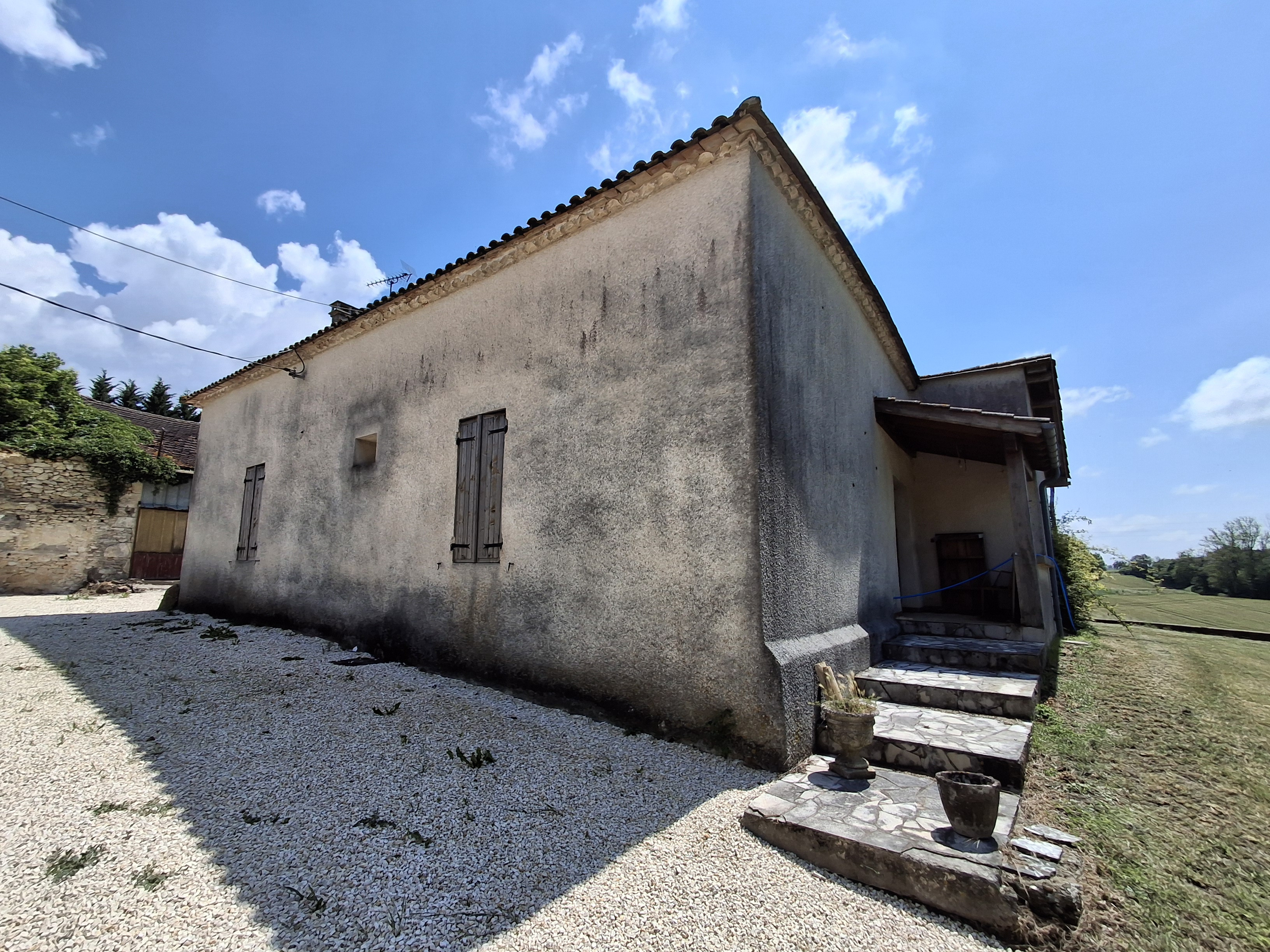 Located in a beautiful and peaceful setting, at the end of a path, this former farm offers a 110m2 house with 2 bedrooms and an office that can be converted into 2 dwellings, an old tobacco barn, an old 'pigeonnier', lean-to and the ruins of an old barn on approximately 5500m2 of land (possibility of more) with a well and a dominant view over the rolling countryside.