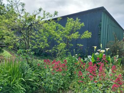 Wooded and well-kept land with an area of 2,223 m² with a closed shed with a wooden frame and roof covered with sheet metal.