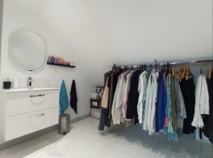 - Upstairs: a bright mezzanine, 3 beautiful bedrooms, 1 office, a bathroom with a recent shower and a toilet. One of the bedrooms has its own water point area with dressing room.