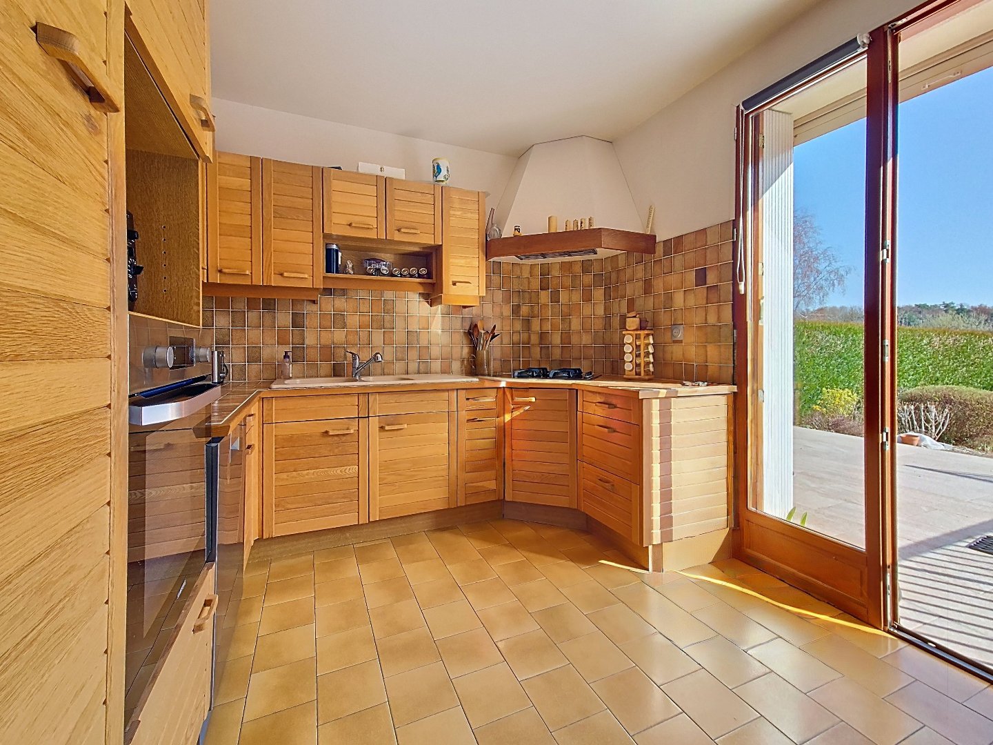 The fitted and equipped kitchen of approximately 10 m² opens directly onto a large adjoining terrace overlooking the expansive garden. This level also includes a comfortable bedroom, a dressing room, a bathroom, and a separate toilet.