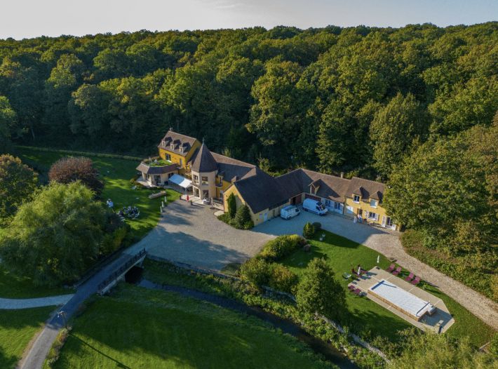 We are delighted to offer for sale this charming real estate complex, nestled in its 10 Hectares of wooded parkland with a pond, river, a 7m x 3.5m heated outdoor pool with a technical room, garage, workshop, outbuildings, and a large shed, all in a peaceful setting.