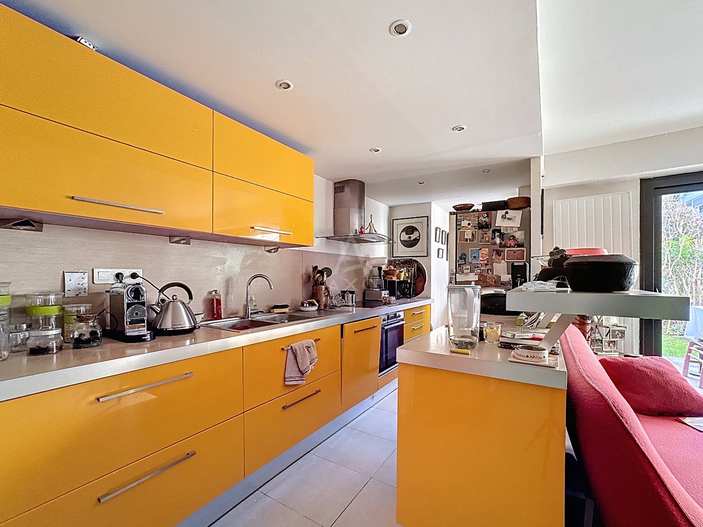 This 78 sq m (840 sq ft) apartment boasts generous proportions and a harmonious layout. The spacious living room with open-plan kitchen opens directly onto an 84 sq m (904 sq ft) private garden, a true oasis of greenery in an urban setting.