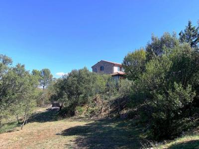 REDUCED in price - Perched on a mountain with a breathtaking view of the surrounding hills, you fell in love with this pretty stone house of 110m2 set in 1,1 hectares of land in terraces, with many olive and oak trees. Built on 2 levels, it consists of an equipped American-Style Kitchen open to the living room of 48m2 (with wood stove) opening onto a beautiful covered terrace facing south west, shower room, toilet.