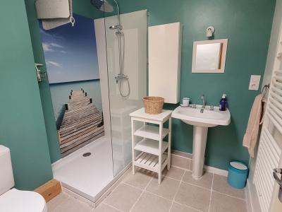 - 1st floor: 13.5 m2 bedroom with en-suite 6 m2 shower room (WC, washbasin, bathtub).