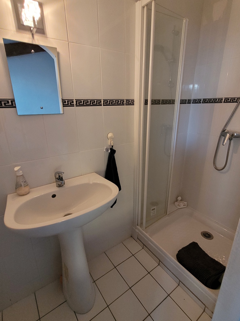 - 2nd floor: Bedroom of 20 m2 with en-suite shower room of 1.5 m2 (shower, washbasin).