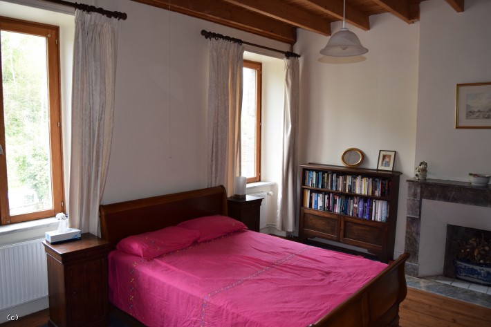 The house itself was built in 1840 as a "Maison de Maitre", but before that, in fact from 1216, a Water Mill had been on site,- hence the name, Le Moulin de Coquerel. The house is around 150 square metres and with the garden and paddock/orchard a total area of just under 5000 square metres. It has been built with a lot of character, witnessed by having rooms in between floors. For example, counting the "cave" as a basement, there are 6 levels.