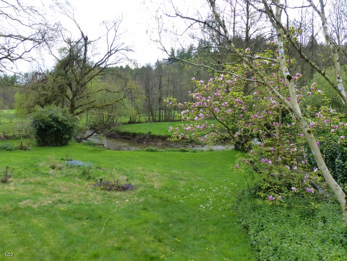 The river Soulles runs around the boundary to the back garden and paddock. It is mainly a trout river but also has a use for salmon fry coming up the river.