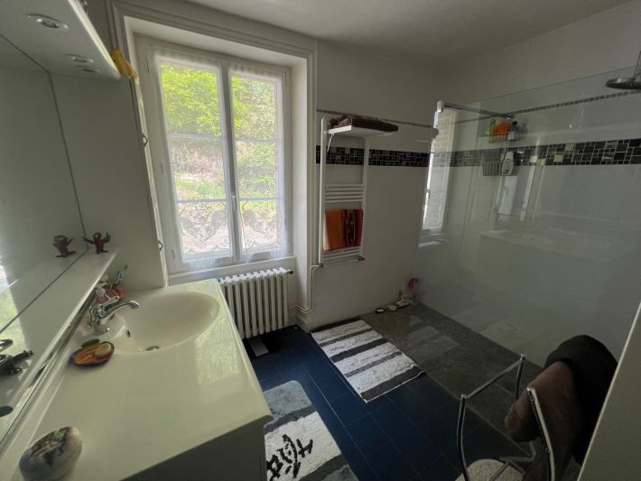 Charming character house comprising a living room with fireplace 34m2, fitted and equipped kitchen 11m2, hallway, three bedrooms 13m2, 12m2 & 9m2, an office 9m2, a bathroom 7m2, and a 106 m² convertible attic.