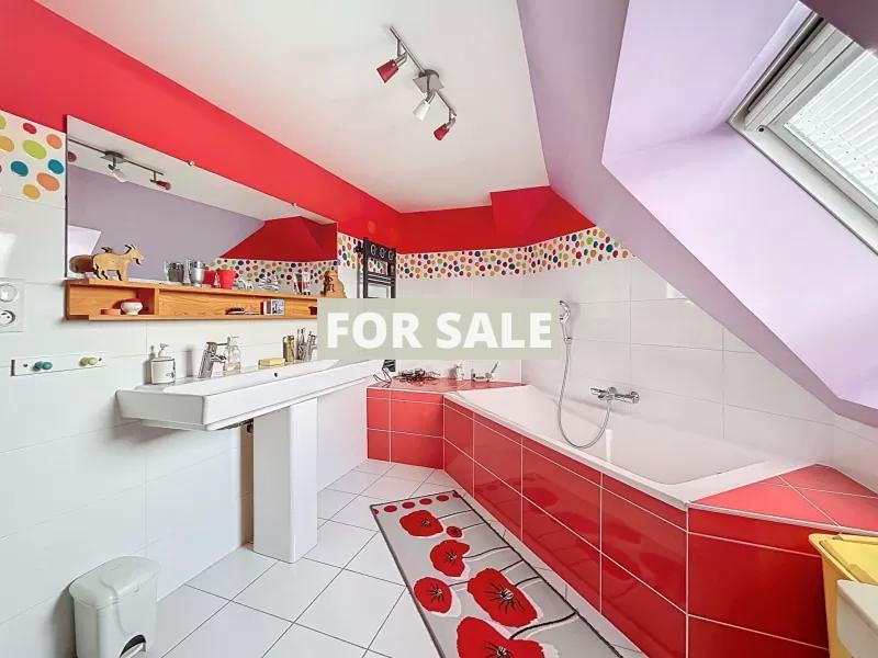 - Ground floor: an entrance hall with built-in wardrobes, a WC with washbasin, a living room with a wood-burning stove, a fitted and equipped kitchen opening onto a dining room, and a utility room with a boiler room.