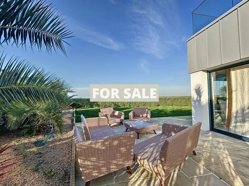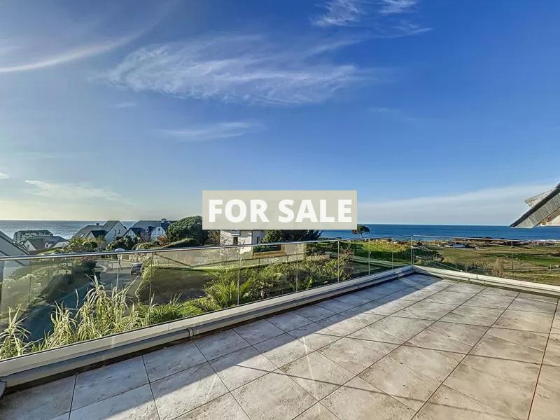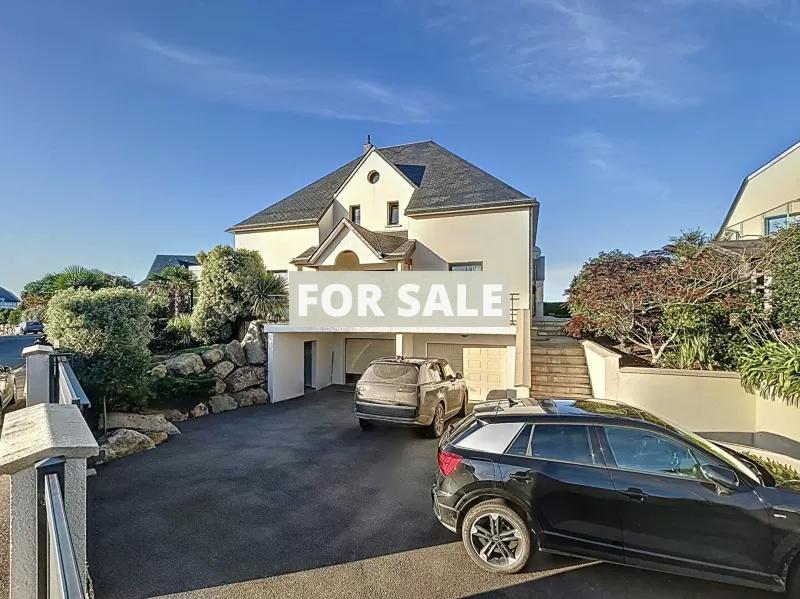 In a prime location with exceptional Sea Views, discover this peaceful 9-room house of 340 m² in Donville-les-Bains (50350). This architect-designed, two-story house includes a basement. An intercom and video intercom system ensure secure access.